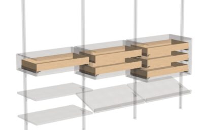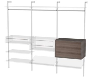 Деревянные/стеклянные полки и навесные/выкатные мебельные модули в комплект не входят и заказываются отдельно.