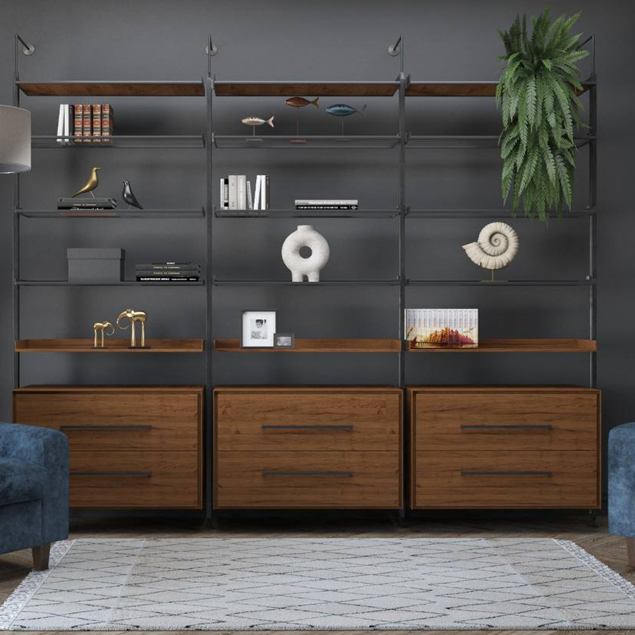 Комплект для изготовления трехсекционного стеллажа VITRA пол-стена для гостиной 2000х500 мм цвет Серебро. Набор комплектующих для изготовления интерьерного стеллажа для гостиной высотой до 2000 мм, глубиной 500 мм, шириной до 3000 мм, цвет Серебро.