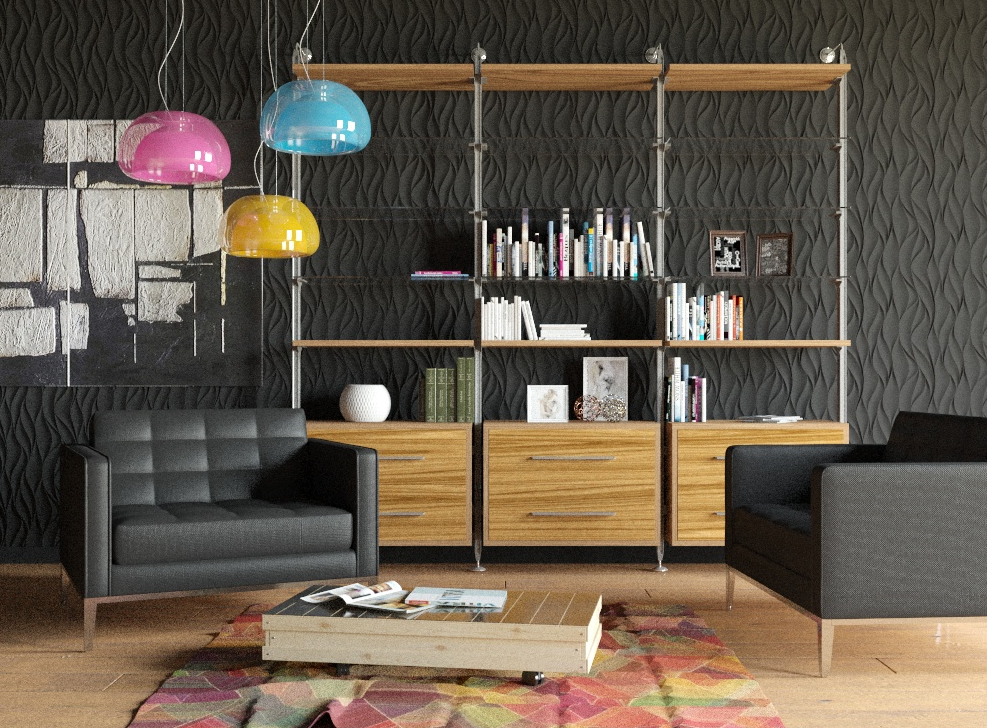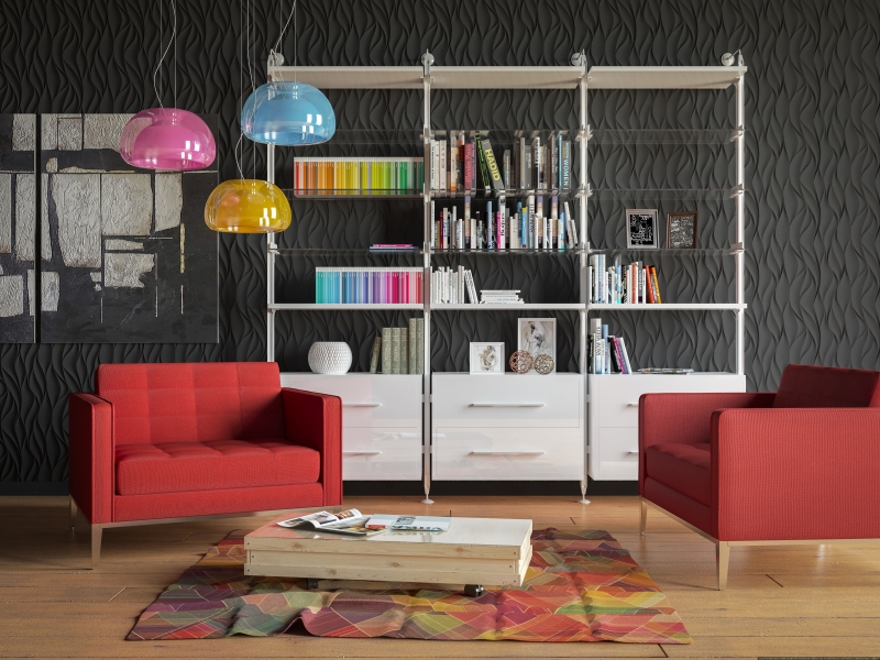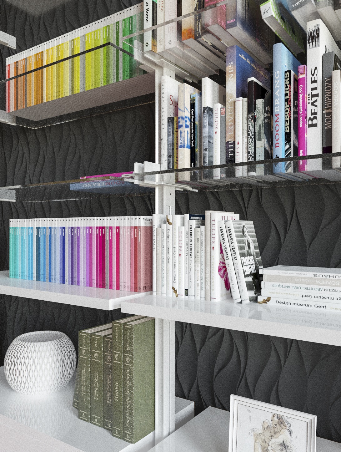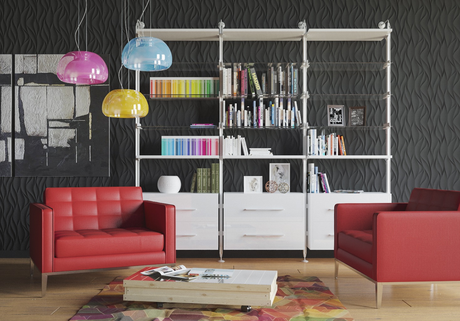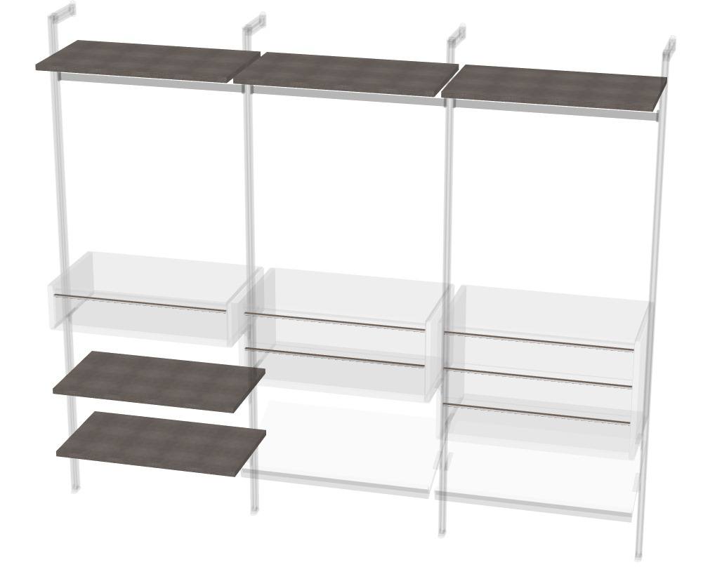 Комплект для изготовления трехсекционного стеллажа VITRA пол-стена для гостиной 2000х500 мм цвет Серебро. Набор комплектующих для изготовления интерьерного стеллажа для гостиной высотой до 2000 мм, глубиной 500 мм, шириной до 3000 мм, цвет Серебро.