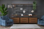 Деревянные/стеклянные полки и навесные/выкатные мебельные модули в комплект не входят и заказываются отдельно.