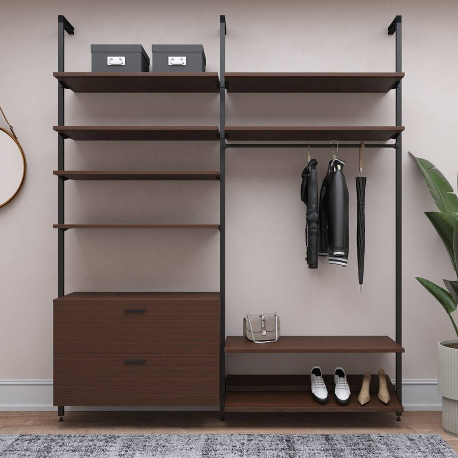 Деревянные полки и навесной модуль с ящиками в комплект не входят и заказываются отдельно.