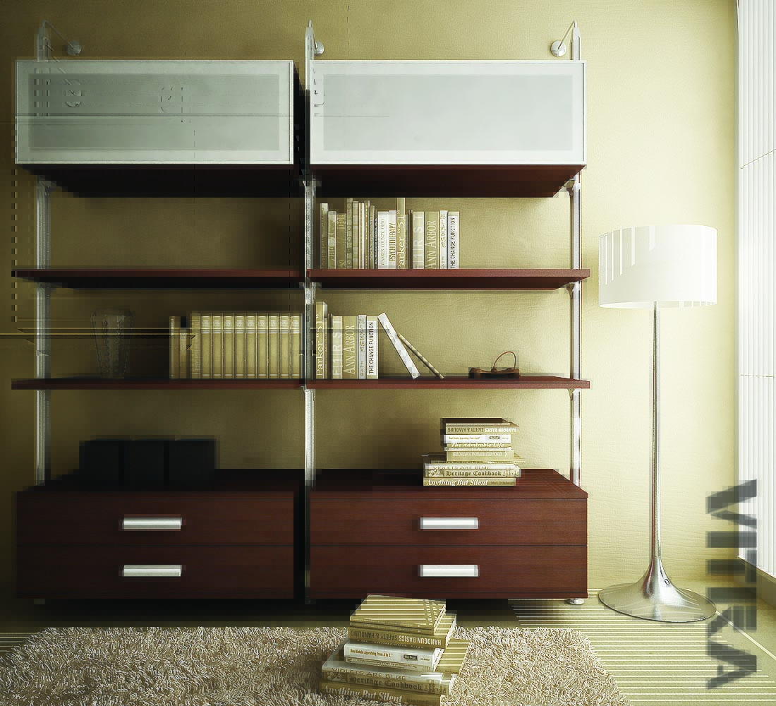 Комплект стеллажа VITRA пол-стена для гостиной двухсекционный 2000х500 мм цвет Серебро. Набор комплектующих для изготовления интерьерного стеллажа для гостиной высотой до 2000 мм, глубиной 500 мм и шириной до 2000 мм, цвет Серебро.